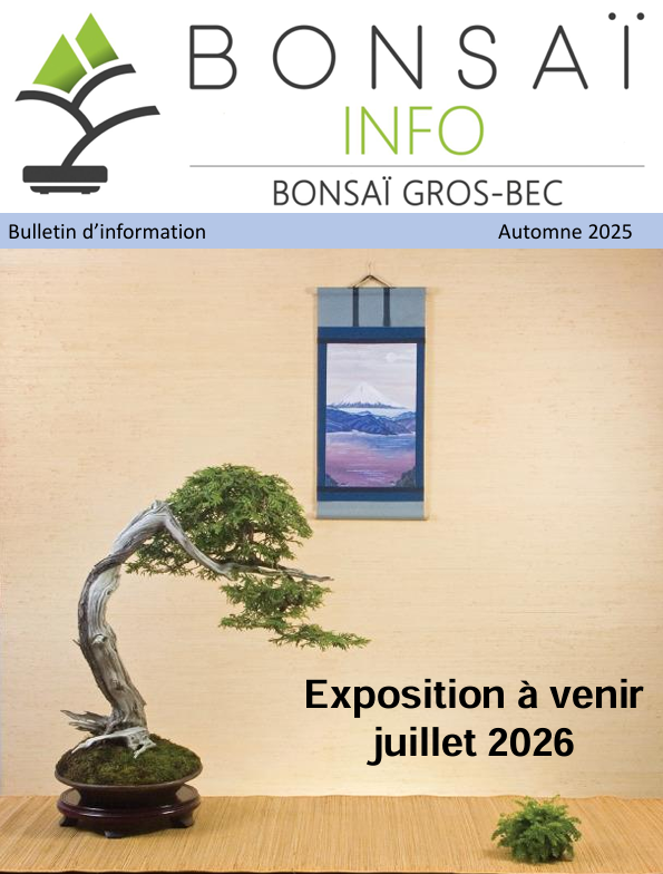 Le bulletin d’information de Bonsaï Gros-Bec. Consulter ici : Cliquez sur l’image pour ouvrir la plus récente édition du bulletin Bonsaï-Info au format PDF. Archives du bulletin Bonsaï-Info Hiver 23-24 Printemps 2024 Été 2024 Consulter ici : Consulter ici : Consulter ici : Consulter ici : Consulter ici : Share on Facebook Share Share on TwitterTweet Share on Pinterest Share Share on LinkedIn Share Share on Digg Share Send email Mail